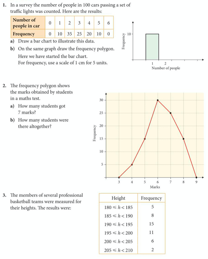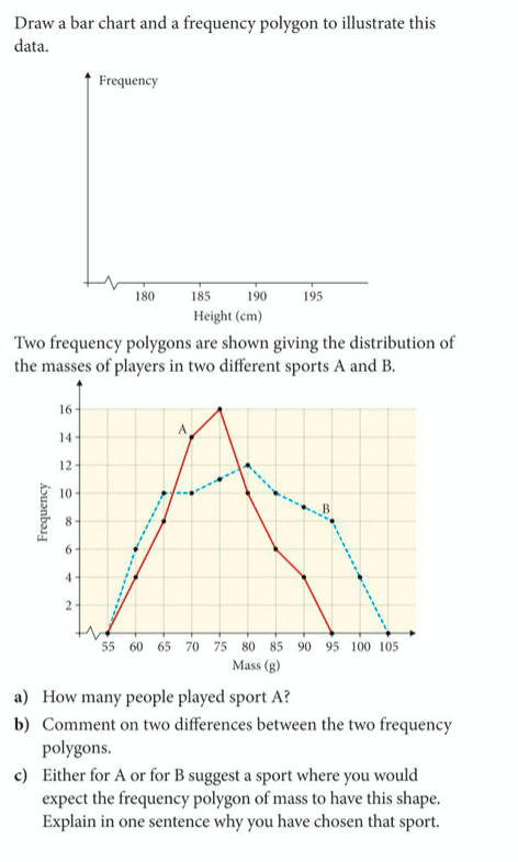 A frequency polygon is an alternative to a bar chart, where instead of drawing bars, we simply mark a point at the midpoint of the top of the bar and join these points, as illustrated below: