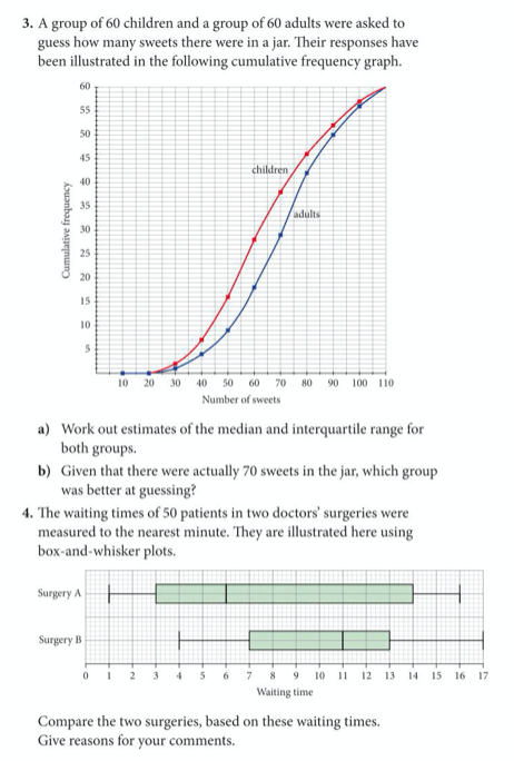 We can use measures of location, measures of spread and the various graphs which we have seen to compare different datasets and make sensible comments about their differences. Let’s try this below: