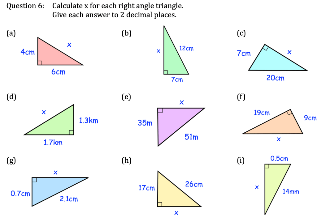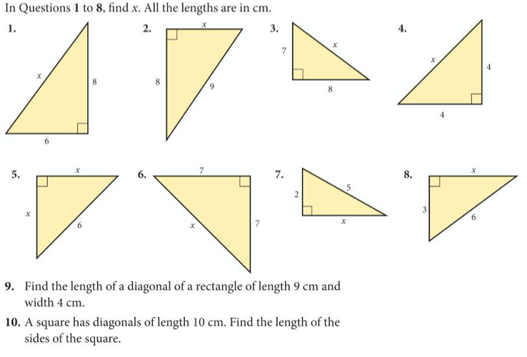 Pythagoras’ Theorem is one of the most important (and oldest) theory in geometry. It is shown below and must be memorised:
