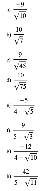 With a fraction like this: it is a little bit more difficult, but not really. We take advantage of the difference of two squares formula by multiplying the top and the bottom by