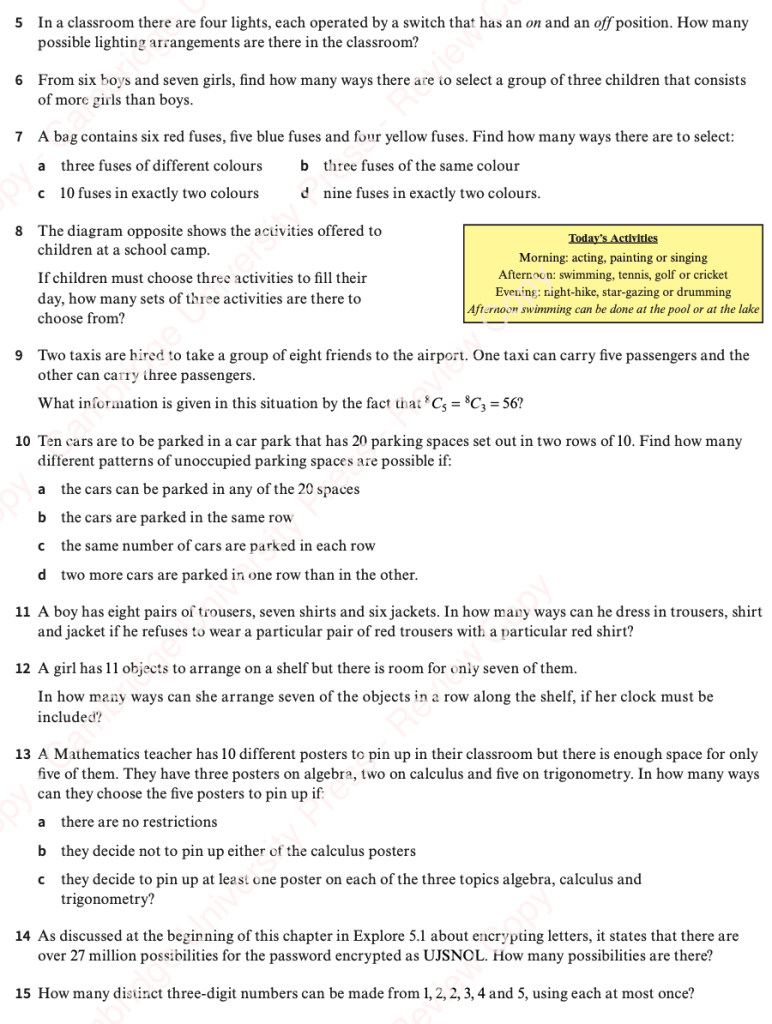 - In how many ways can five playing cards from a standard deck of 52 cards be arranged in a row?