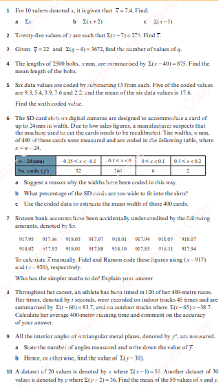Add an extra column ‘xf’ for the product of the frequency and the data value (if the data is in classes, x will be the midpoint of the class).