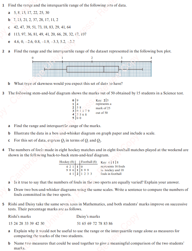 These are quick and useful ways to summarise the 5 most important numbers that represent a data set, i.e. the minimum value, the lower quartile, the median, the upper quartile and the maximum value