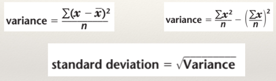 The formula on the left is easiest to understand, but the formula on the right is easiest to calculate, so we will generally be using that.