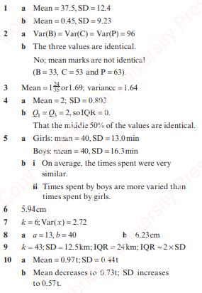 The marks are summarised by the totals Σx = 7020, Σx2 = 424 320 and Σy2 = 352 130. Calculate the girls’ mean mark, given that the standard deviation for all these students is 10.