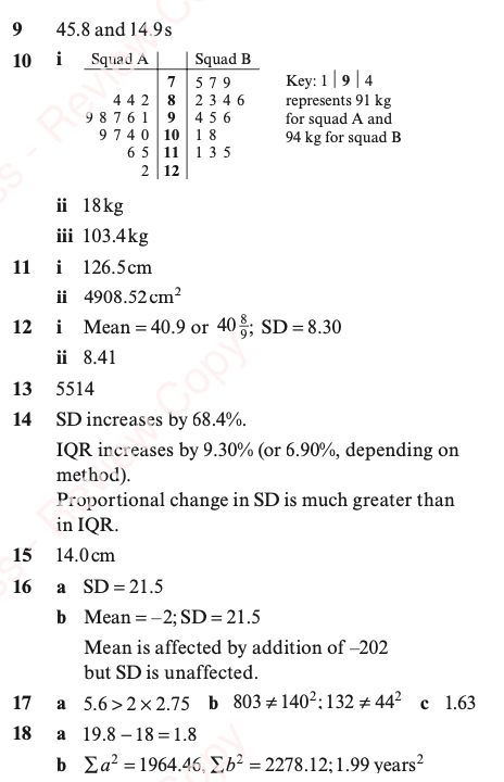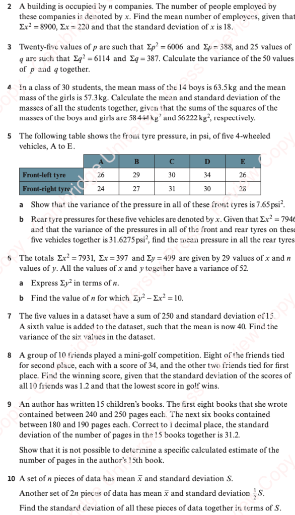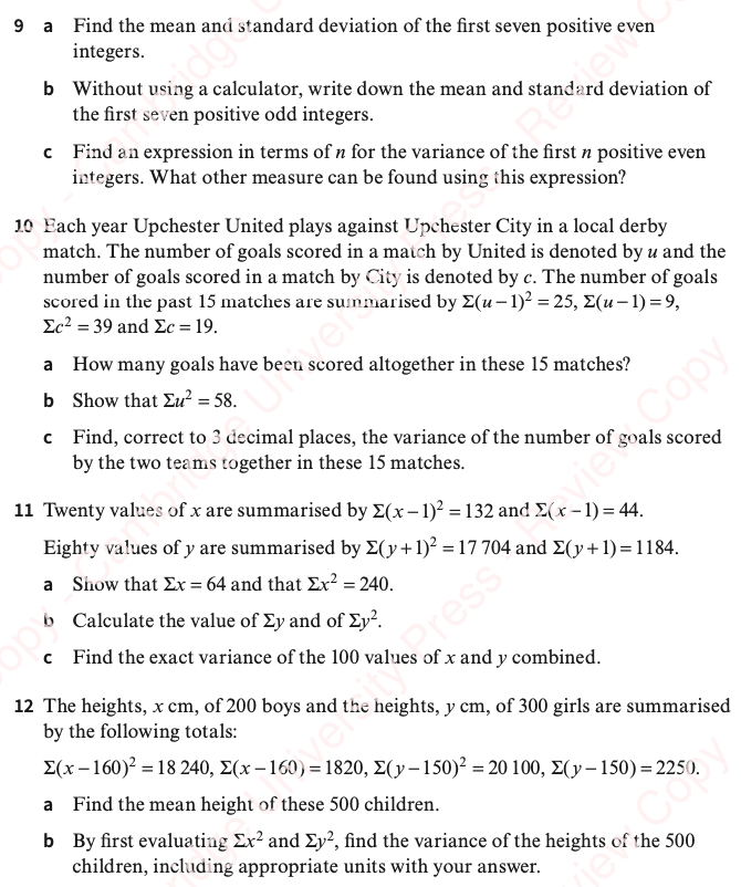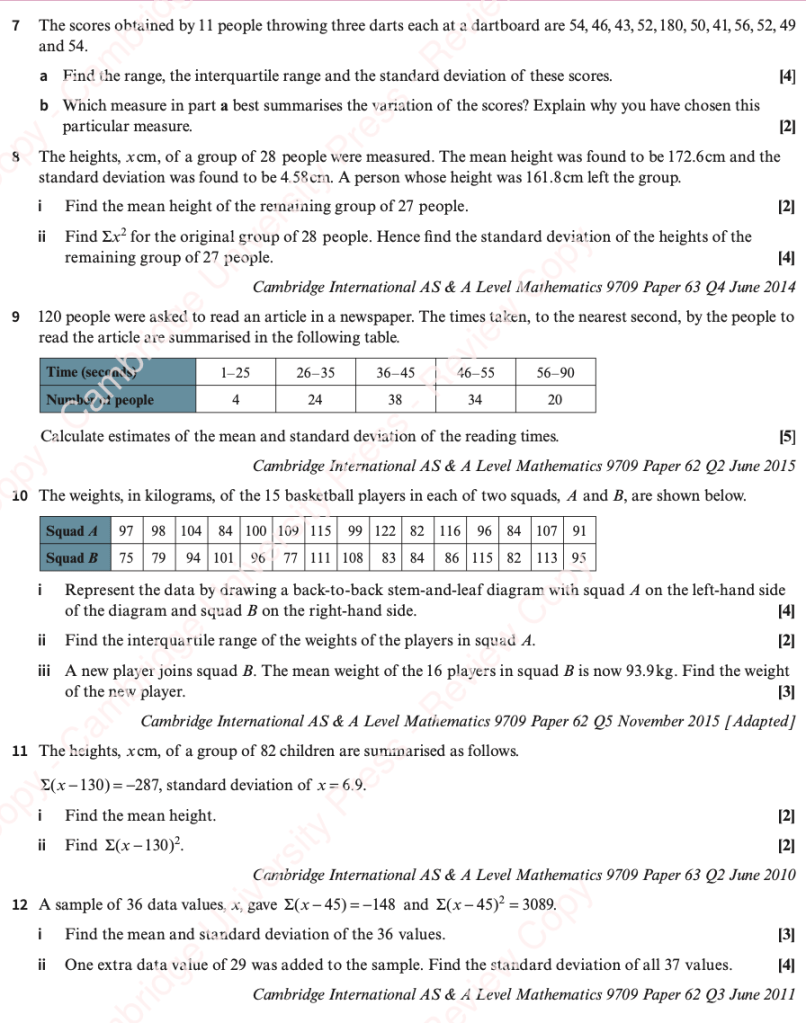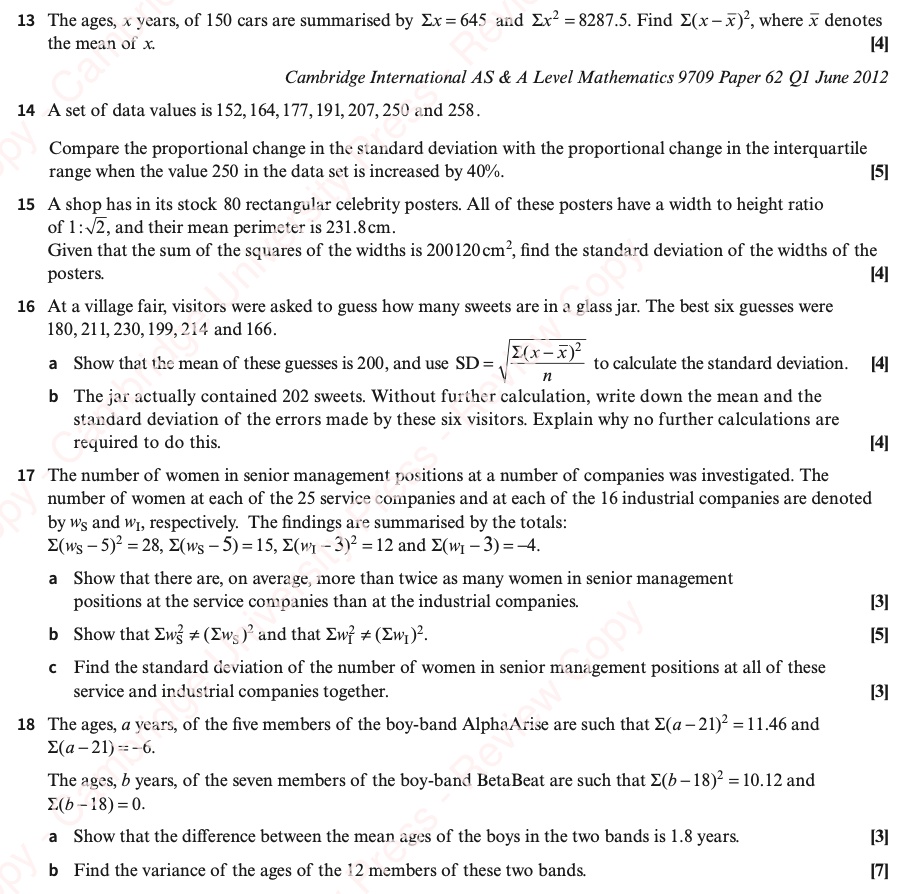 The heights, x cm, of 10 boys are summarised by Σx = 1650 and Σx2 = 275 490.