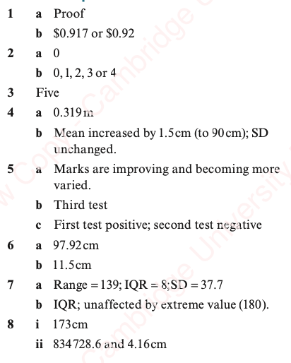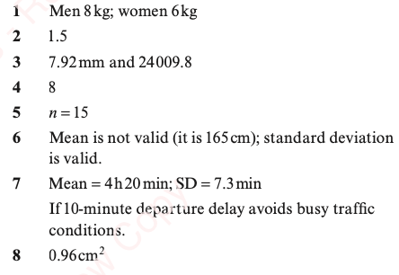 The heights, ycm, of 15 girls are summarised by Σy = 2370 and Σy2 = 377835.