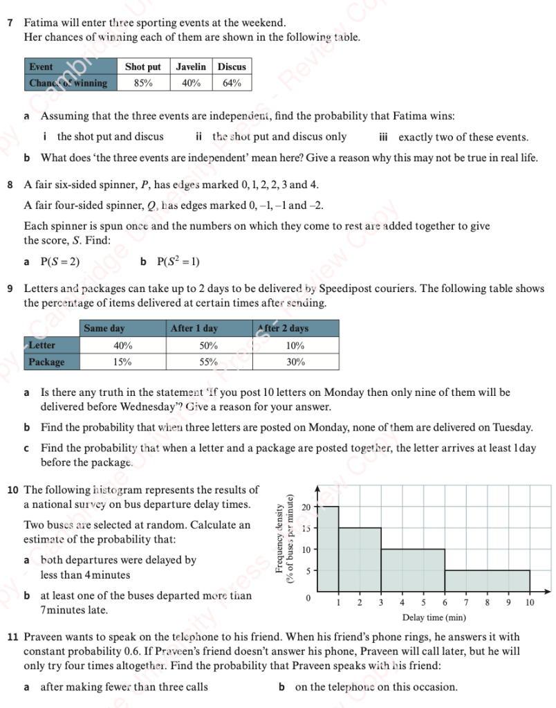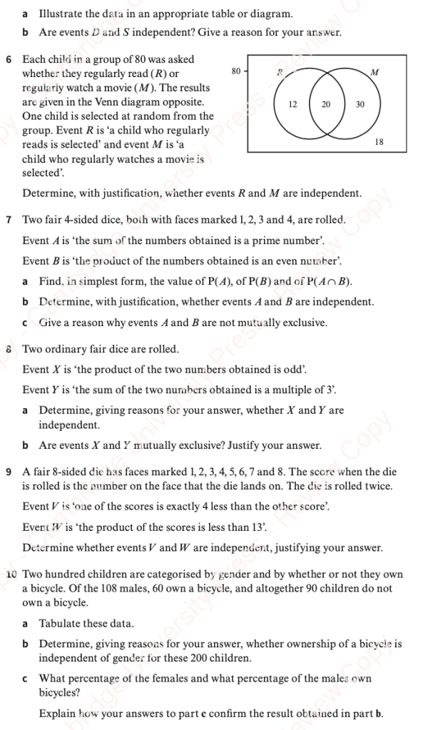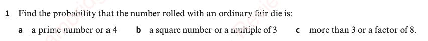 e.g. P(a playing card is a ‘3’ or a ‘5’) = P(card is a ‘3’) + P(card is a ‘5’).