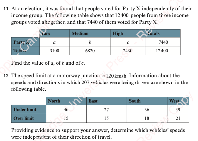 A group of 45 students from three different schools, X, Y and Z, were asked how many subjects they are studying at A level. The results are given in the following table: