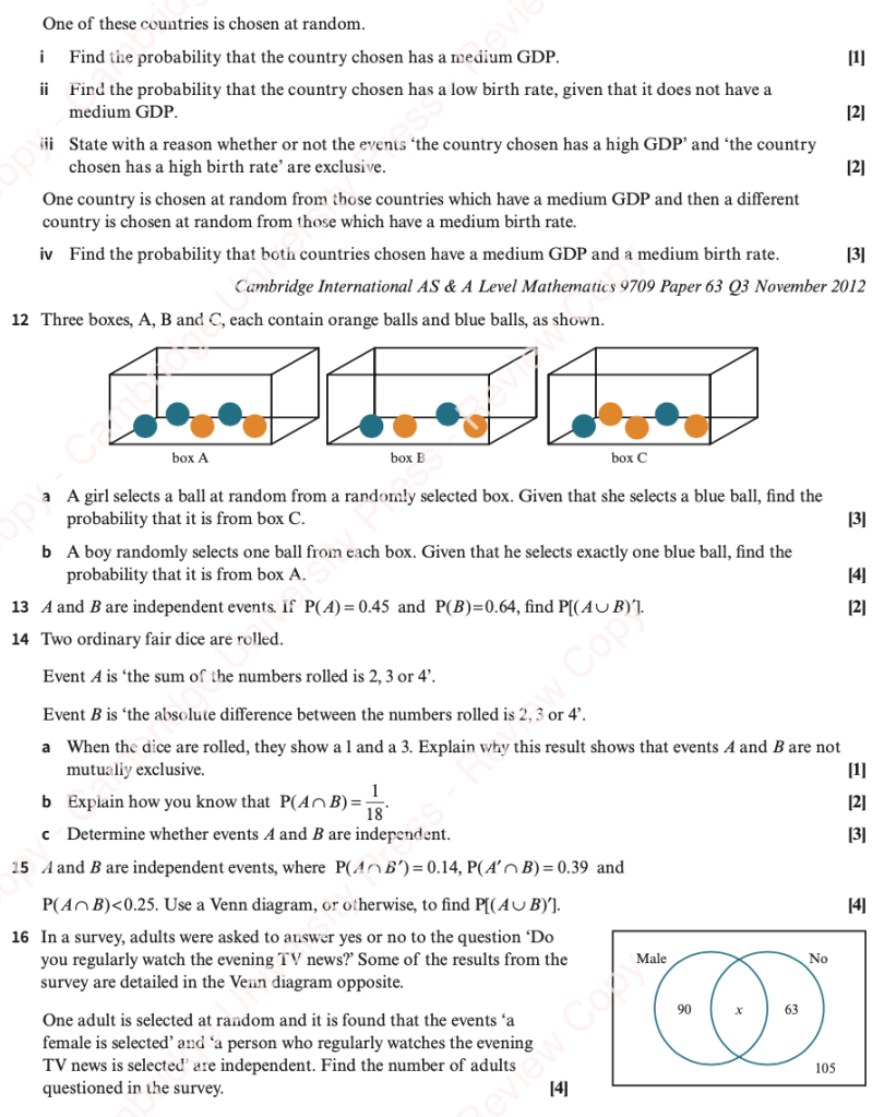 e.g. P(a playing card is a ‘3’ or a ‘red’) ≠ P(card is a ‘3’) + P(card is a ‘5’).