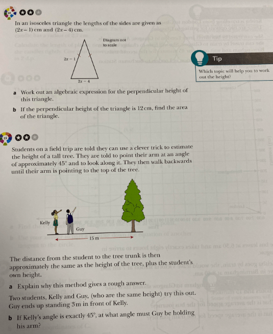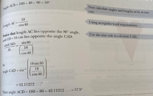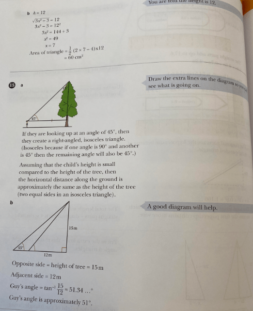 Instead of adding a parallel line we could add a perpendicular line through “a” to make two triangles as shown below. We can then deduce the missing angles in the triangles and use these to calculate a, using a diagram as shown below: