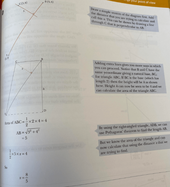 With geometrical problems, we can add lines to the problem that could help us. These could be parallel or perpendicular lines, lines of symmetry, lines joining points, or other useful lines.