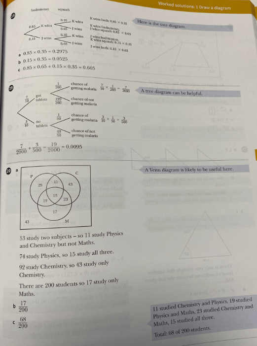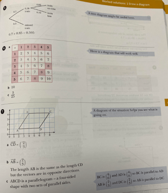 In mathematics, diagrams are often a useful way of organising information and help us to see relationships. A diagram can be a rough sketch, a number line, a tree diagram or two-way table, a Venn diagram, or any other drawing which helps us to tackle a problem.