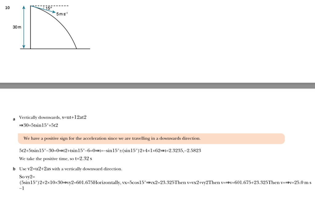 Projectiles Exercise 1 Worked Solutions