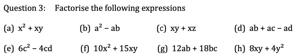 Depending on the question, sometimes we want to expand brackets, and sometimes we want to do precisely the opposite and put our term into brackets. This is called factorising and means that we are rewriting our expression as a product.