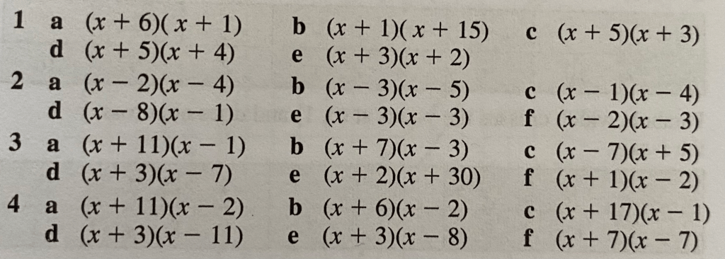 As with most of mathematics, it is much easier to see what this means by way of example, so let’s look at the examples below together with the teacher. It is always easiest to start by considering the constant, and which factor pairs multiply together to give it, and then consider which of those factor pairs sum to give the coefficient of x.