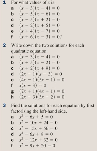 One of the main benefits of factorising quadratic expressions is that it allows us to solve quadratic equations. Let’s see this in practice below: