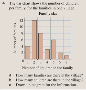 In a bar chart we label our categories along an x-axis and label our frequency on an x-axis. A pictogram is an alternative sometimes used, where we choose a picture as a key to represent a certain frequency