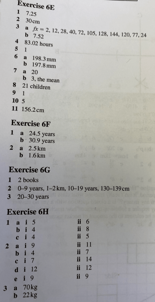 Let’s complete all of exercise 6E, questions 1 and 3 of exercise 6G and all of exercise 6H. These questions are on pages 84 to 88 of the textbook: