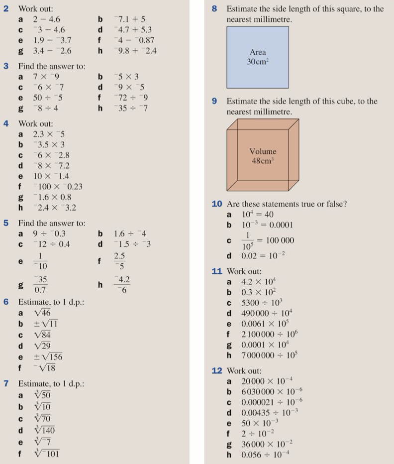 Let’s now practice all of the number topics that we’ve looked at so far, using the below exercises (exercise 1 from pages 17 and 18 of the textbook and exercise 4 from pages 67 and 68 of the textbook)