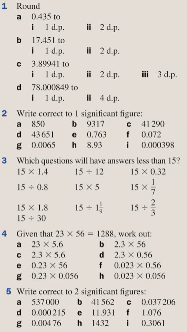 Let’s practice the various topics that we have studied in number during this section by completing exercise 7 on pages 107 and 108 of the textbook and exercise 10 from page 159 of the textbook: