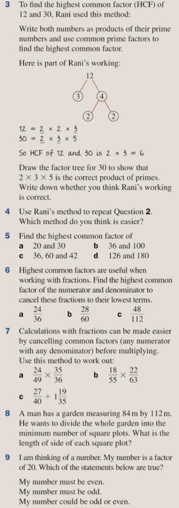 Let’s complete exercise 10C on pages 157 and 158 of the textbook, which will also remind us of the idea of highest common factors.