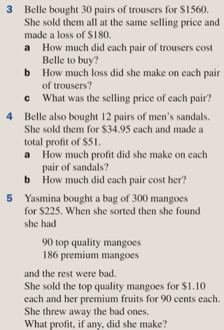 So if a bicycle cost $315 to make and sells for $500, what will be the profit on it. If it goes out of fashion and has to be sold for only $300, what will be the profit on it?