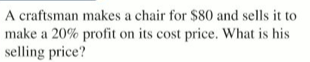 We can also do calculations the other way round. That is, if we know how much something cost and we know the percentage profit, we can then work out what price it was sold at.