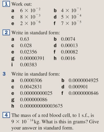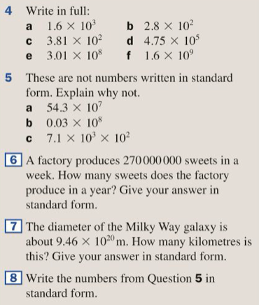 Very large and very small numbers can be written in a special way called standard form, so that we don’t waste time writing lots of zeroes. The rule below for writing a number in standard form should be copied into your textbook
