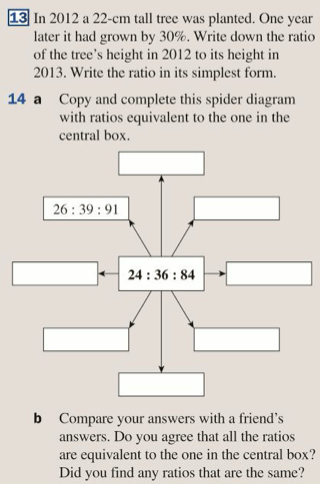 The idea of a ratio is similar to the idea behind scale factors and is related to the idea of fractions. Students from some countries must be careful with the notation, because in English we use the symbol : to represent a ratio (and not division)