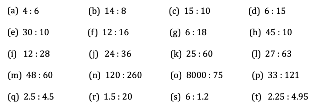 Simplify the following ratios: