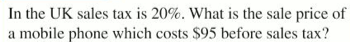 A sales tax (sometimes called VAT or Value Added Tax) is a tax which is imposed on the sale of a good. So, for instance, in the UK the sales tax is 20%. This means that if a company wants to sell a computer for £500, they must also pay the government 20% of that amount. They will normally do this by selling it for £600 and sending the extra £100 to the government.