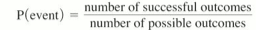 With equally likely and mutually exclusive outcomes, the probability of an event is calculated as follows: