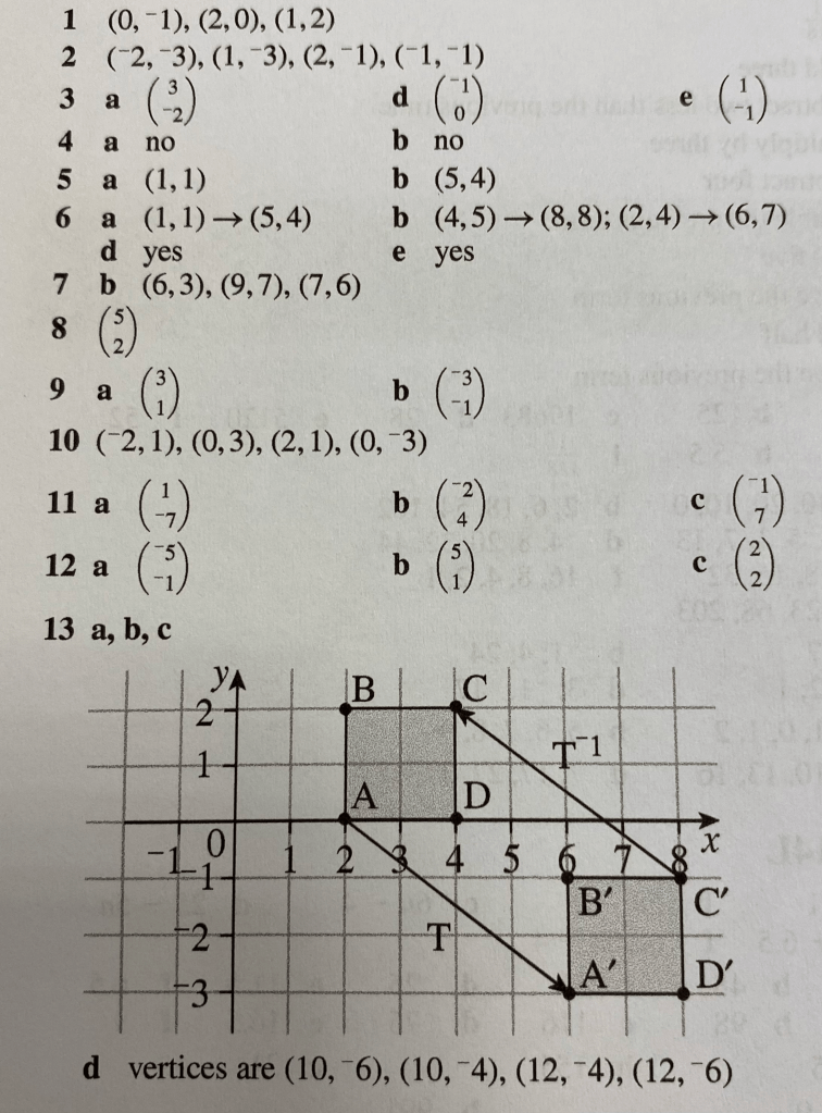 Copy the diagram into your book. On your copy also draw the triangles listed below in parts (a) to (e). If any of the extra triangles you draw are translations of ABC, then write down the column vector of the translation: