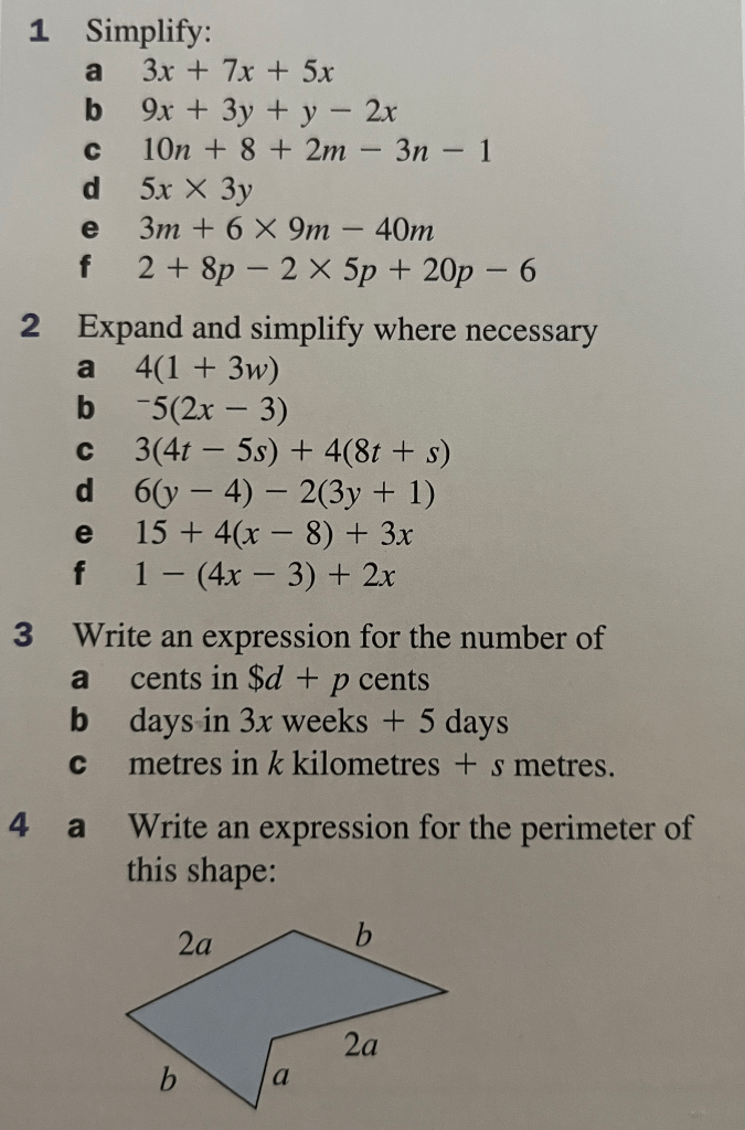 Year 7. Algebra. Practice 1