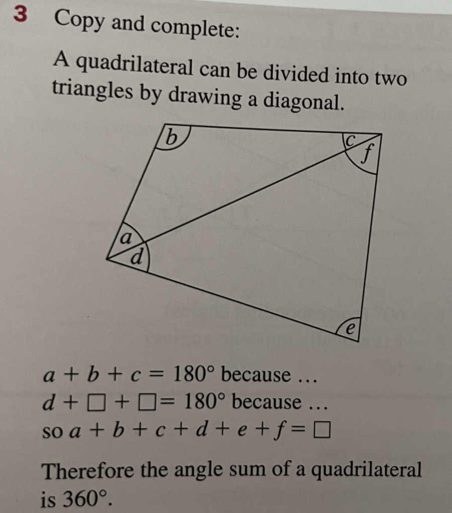 Knowing that the sum of angles in every triangle is 180º and that the sum of angles in every quadrilateral is 360º let’s us tackle a wide range of questions.