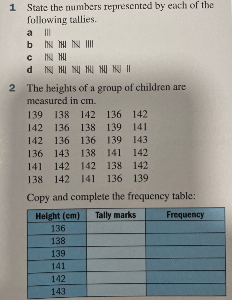 When we are collecting data, we often use a tally chart to register the different items within a category (e.g. the different people that have brown eyes