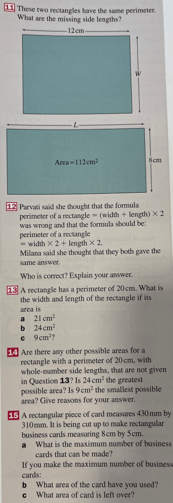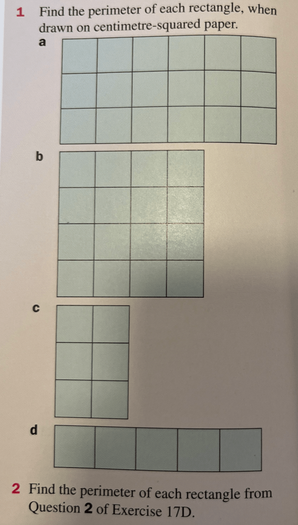 Perimeters can be measured in millimetres, centimetres or metres.