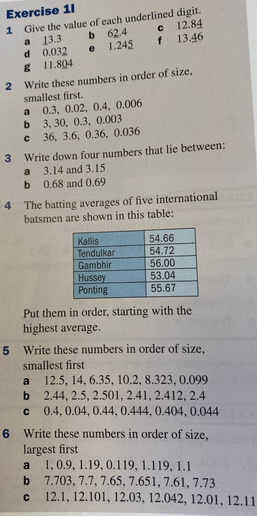 Knowing the place value of each of the digits in a number helps us to order the numbers, because we know that a 1 in the “tenths” position is a lot larger than an 8 in the “thousandths” position.