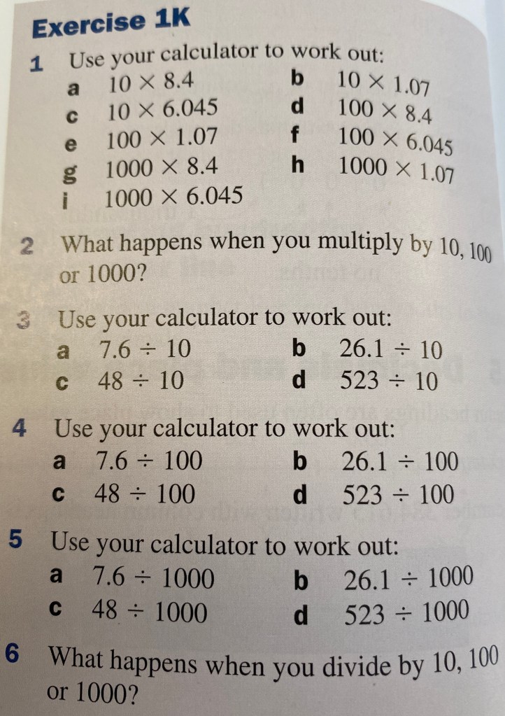 Our number system is set up so that multiplying or dividing by numbers like 10, 100, 1000 is very easy. We should think of the decimal point as being fixed and all of the other numbers moving around it to do these calculations. We NEVER think about moving the decimal point. Sometimes we need to use zero digits to fill in missing spaces in our answer. Let’s try multiplying and dividing a few different numbers by 10, 100 or 1000 to see how this works in practice.