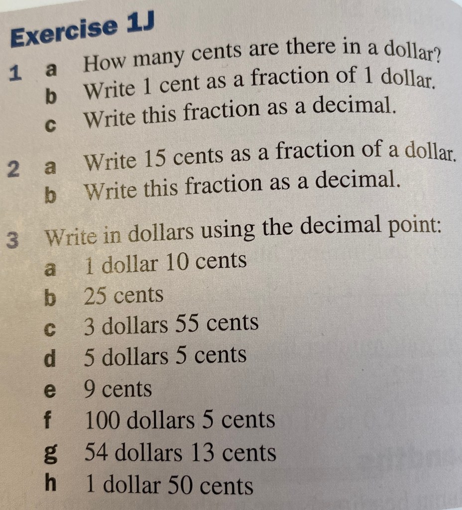 When we deal with currency (i.e. money) the situation is a bit special. We have to know how many parts each unit of currency can be broken down into in order to write it correctly. In British currency, there is 100 pence in every pound, and if we want to say 12 pounds and 15 pence, we write it as £12.15. We never use more than two decimal places to refer to currency. US currency is very similar, as you will see in the exercise below.