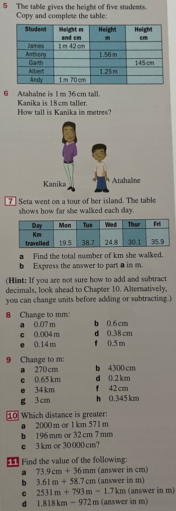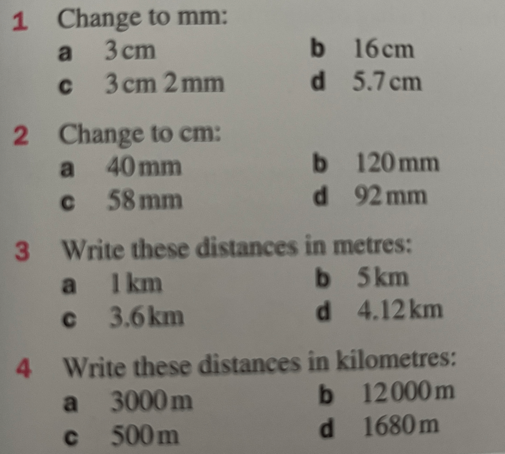 We need to be able to convert between millimetres, centimetres, metres and kilometres, and do that backwards.