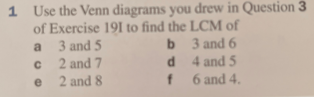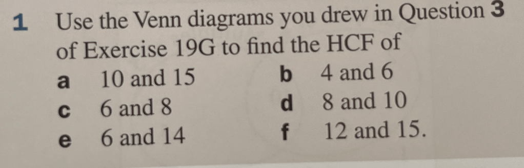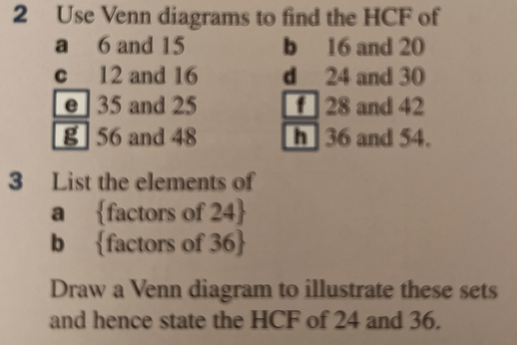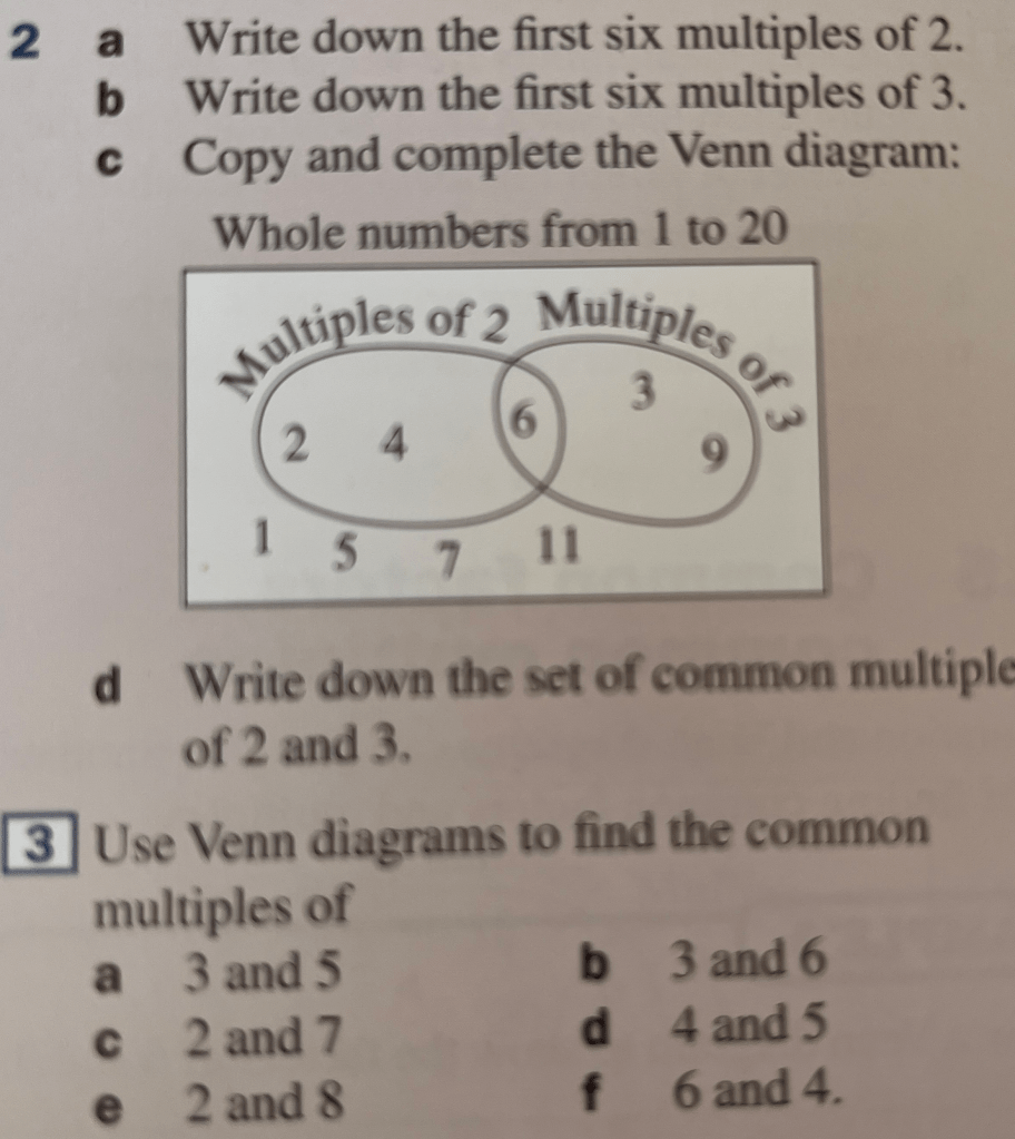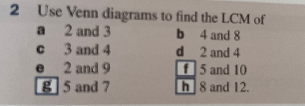 Using Venn diagrams gives us a neat way to find common factors of a pair of numbers or common multiples of a pair of numbers
