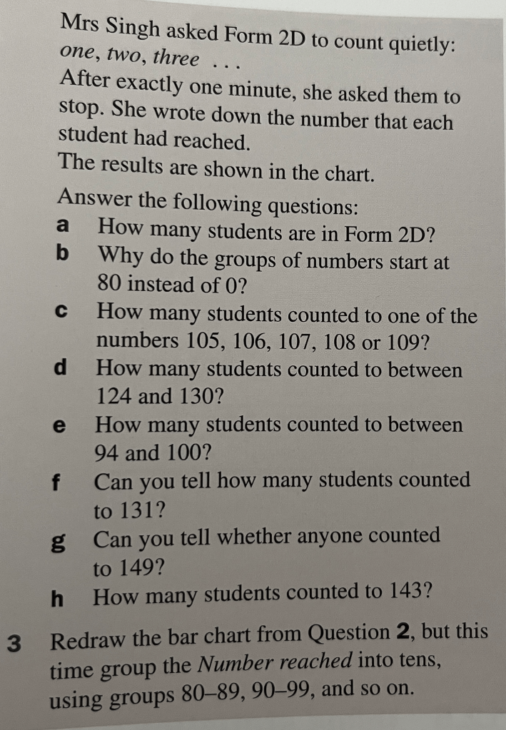 2. (a.) 41, (b.) No one counted less than 80, (c.) 7, (d.) 3, (e.) 2, (f.) no, (g.) no, (h.) none