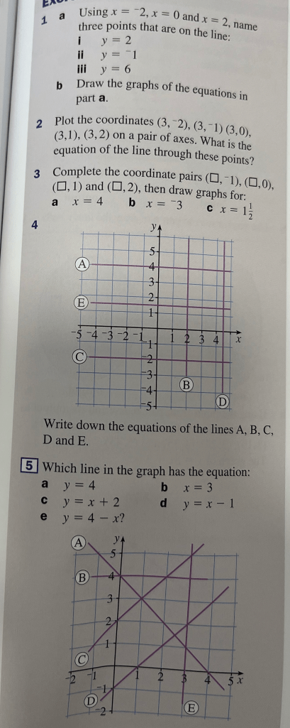Some equations include y or x but not both, e.g. y=4 or x=7. How do you think these would look like on a graph?