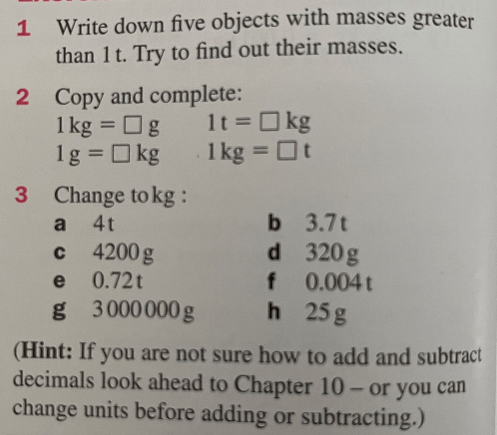 The kilogram is the SI unit of measure. It is about the mass of single bag of sugar. Related to the kilogram is the gram and the tonne. A kilogram is a thousand grams and a tonne is a thousand kilograms. What would you need to do to convert between these measures? Let’s try a few.