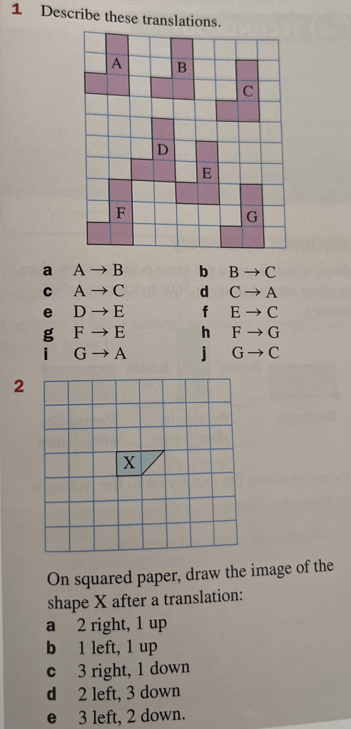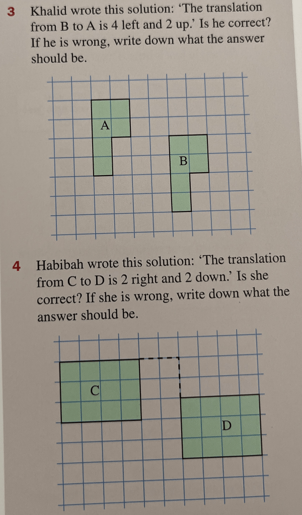 We can describe translations on a grid by saying how far to the right or left we have moved it and how far up or down.